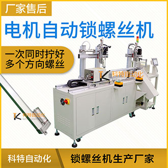 本案例主要為電機設計自動鎖螺絲機,電機型號有很多,其主要作用是產生驅動轉矩,作為用電器或各種機械的動力源,產品長桿電機驅動,在裝配加工擰螺絲工序中要求非常高,電機機芯上的2顆螺絲自動擰緊和電機的尾端一顆螺絲自動擰緊,廠家要求產品要同時鎖付好所有的螺絲,而且扭力矩精確到位,為此科特自動化根據產品結構以及廠家的生產要求進行設計水平橫向自動鎖螺絲機。