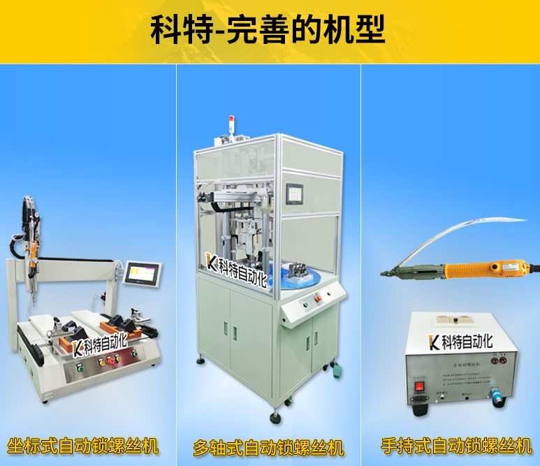 電批在臺面的空間內上下左右前后任意移動,主軸有上下限位器,將批嘴移動到螺絲孔上方然后將限位器固定好,保證批嘴不會接觸產品而刮花產品,對正螺絲孔后機器帶動電批向下壓,電批有下壓啟動功能,螺絲接觸到螺絲孔自動啟動電批,并完成鎖付,鎖付結束電批自動停止轉動,機器將電批抬起,螺絲自動送到批嘴,自動鎖螺絲機將電批移動到下一個螺絲孔繼續鎖螺絲。